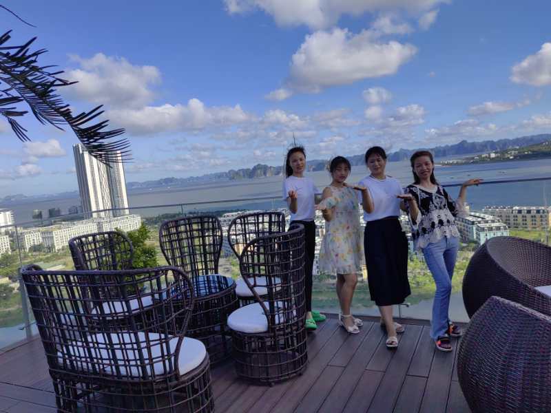 晚上入住的下龍灣五星級(jí)酒店十分豪華,房間布置豪華漂亮,打開窗簾面向大海,更有特色的是樓頂有游泳池、咖啡廳等,可以上去游泳、邊喝咖啡邊靠在椅子上觀看整個(gè)下龍灣的夜景,這也是拍照的絕佳好去處,公司男同事忙著游泳、女同事則忙著合影留念,忙的不亦樂乎。